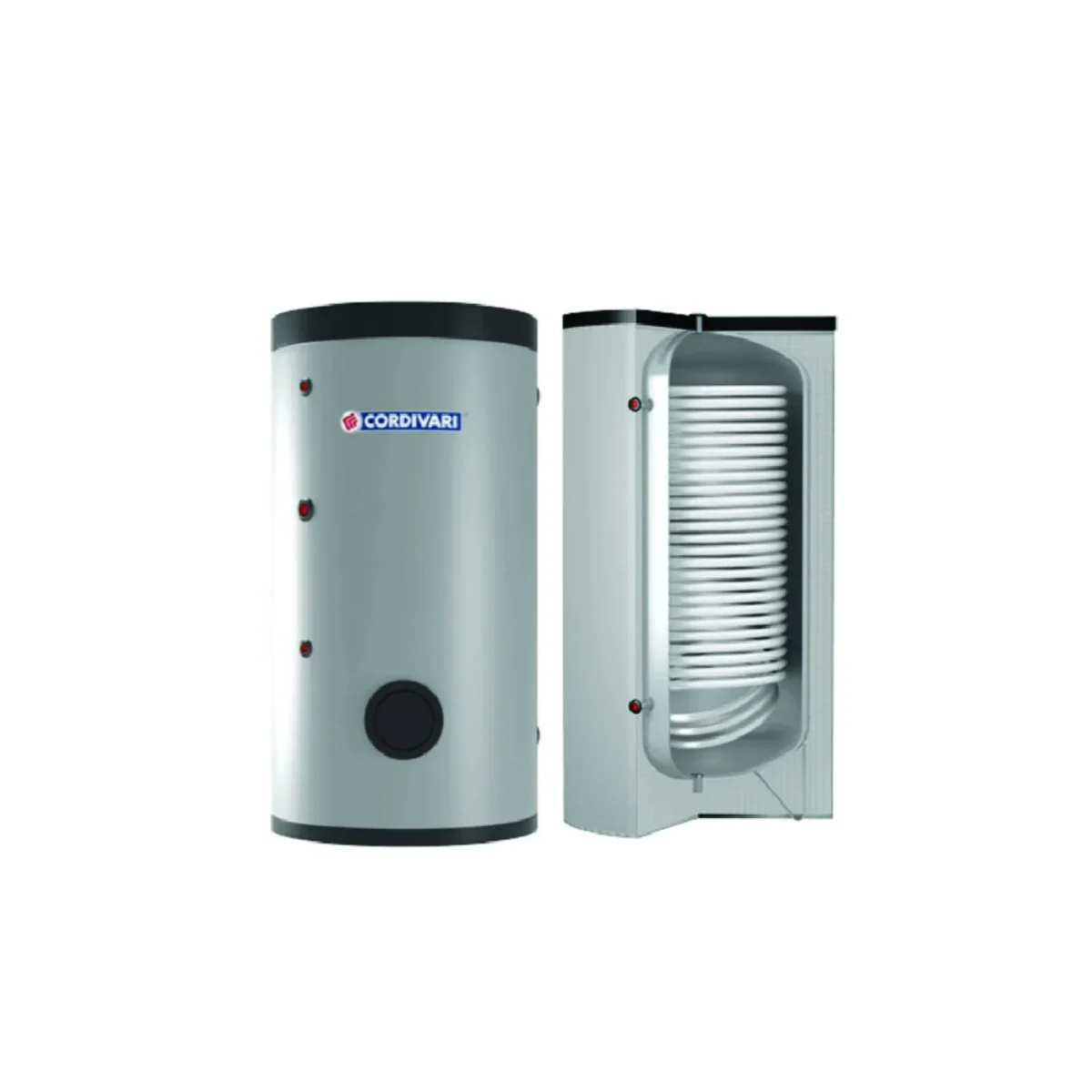 Cordivari Bolly1 XL WSB 200 l je ocelový zásobník teplé užitkové vody se dvěma integrovanými výměníky, ideální pro kombinaci kotle, tepelného čerpadla nebo solárního systému.
