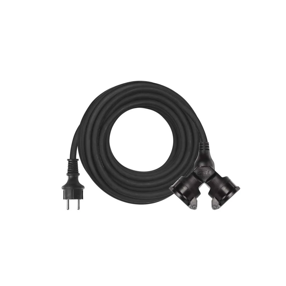 Gumový prodlužovací kabel 15 m, 1,5 mm², IP44 – odolný venkovní kabel se dvěma zásuvkami. Flexibilní, bezpečný a vhodný pro dílnu, zahradu i stavbu.