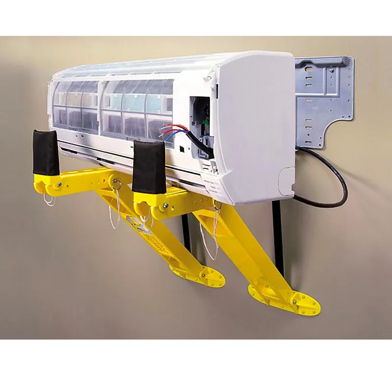 Je vyrobena z odolného ABS plastu a nabízí stabilitu, snadnou manipulaci a možnost nastavení sklonu pro přesné vyrovnání jednotky. Díky své univerzálnosti je vhodná pro různé typy klimatizačních jednotek. Gumové ochranné prvky zabraňují poškození zdi a jednotky během montáže. Kompaktní rozměry a praktické madlo usnadňují přenášení a použití konzole přímo na místě instalace.