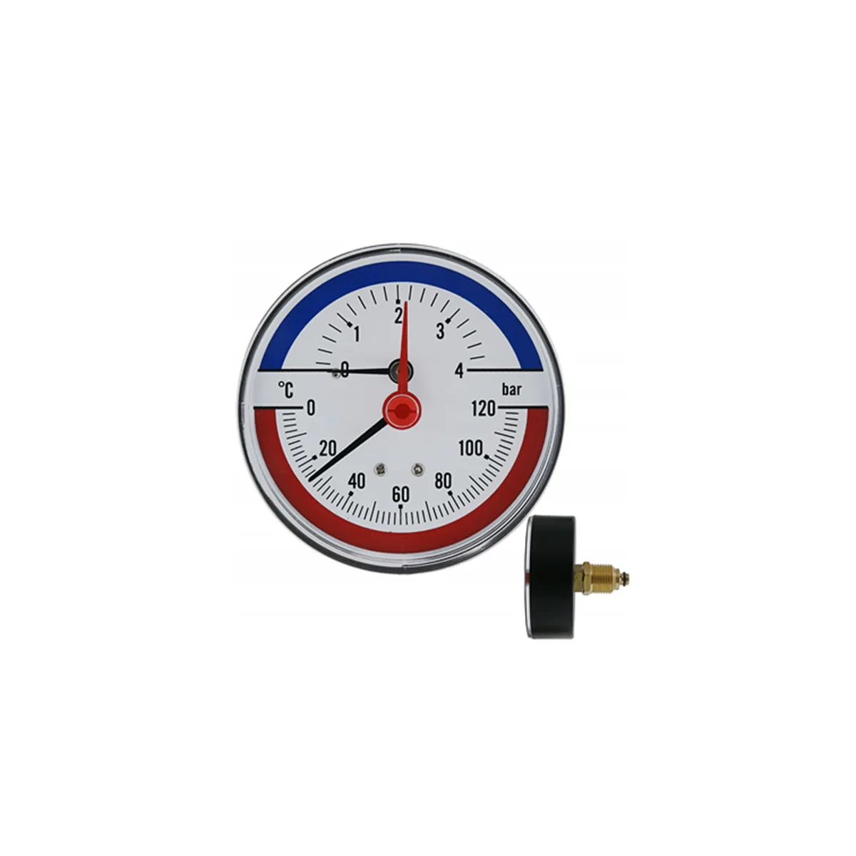 W TERMO-Manometr 1/2″ 0–4 bar se zadním TMAP je kvalitní a spolehlivý nástroj určený pro měření tlaku v systémech, kde je požadován rozsah od 0 do 4 bar. Tento manometr je vybaven zadním TMAP připojením, které umožňuje snadnou instalaci v různých aplikacích. Je ideální pro použití v průmyslových systémech, topných a chladicích zařízeních nebo v systémech, kde je třeba sledovat tlak kapalin či plynů. Manometr nabízí přesná a rychlá měření, což zaručuje efektivní kontrolu a správnou údržbu zařízení. Robustní konstrukce zajišťuje dlouhou životnost a odolnost vůči mechanickému poškození.