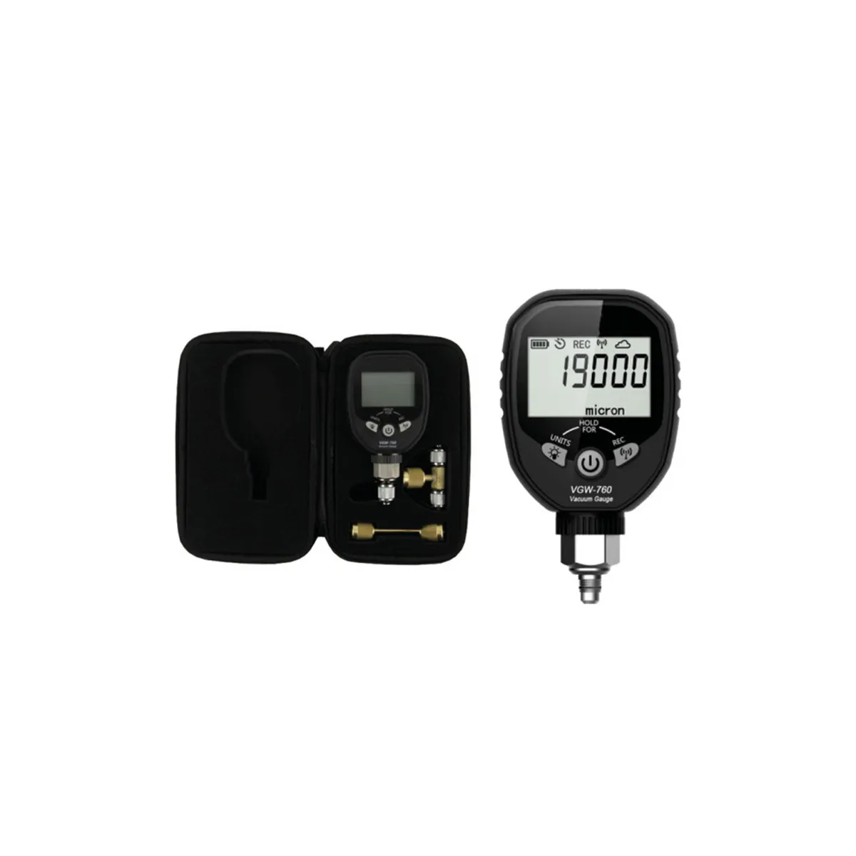 Profesionální bezdrátový digitální vakuometr napájený 3×AA bateriemi je ideální pro měření vakuových hodnot v klimatizačních a chladicích systémech.