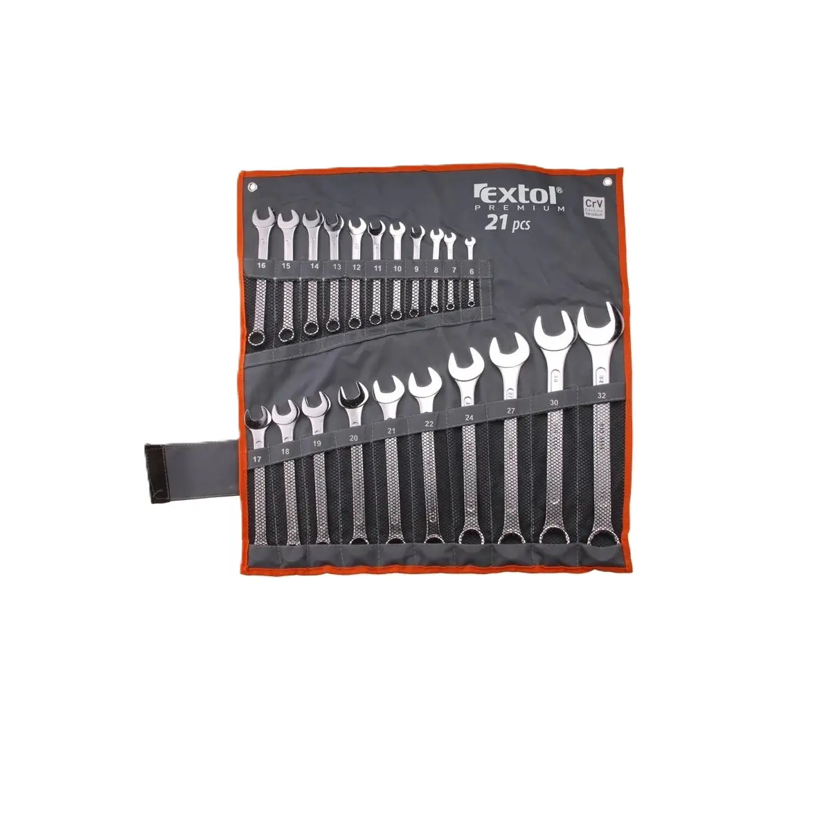 Profesionální sada 21 kombinovaných klíčů Extol Premium – odolné nářadí pro každodenní použití v rozsahu 6–32 mm.