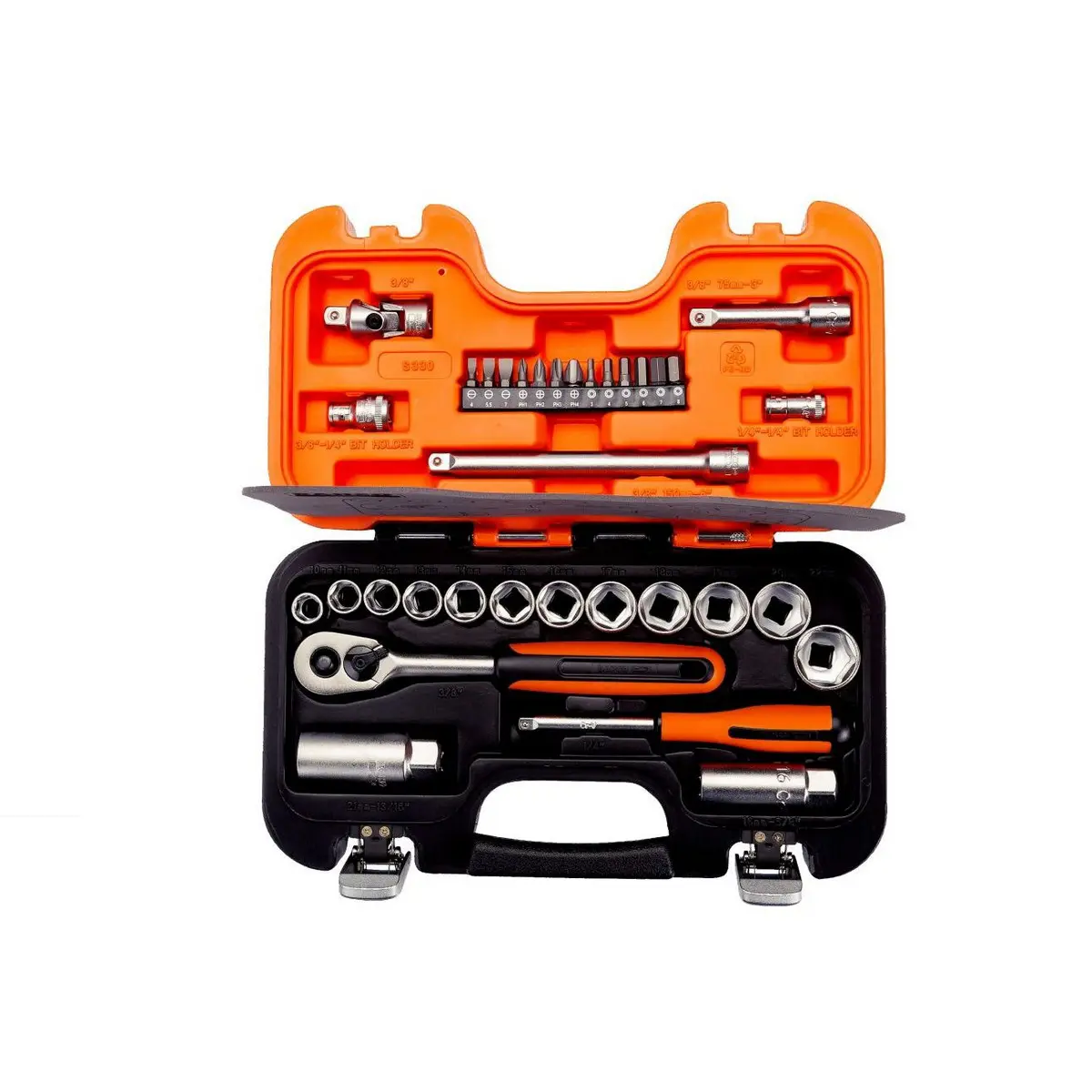 Sada Gola BAHCO S330 obsahuje kompletní výběr nástrčných klíčů, ráčen a příslušenství v rozměrech 1/4″ a 3/8″. Díky široké skladbě je ideální pro profesionální mechaniky, servisní techniky i domácí kutily. Nástroje jsou vyrobeny z vysoce kvalitní chrom-vanadové oceli, která zajišťuje dlouhou životnost, pevnost a odolnost proti opotřebení.