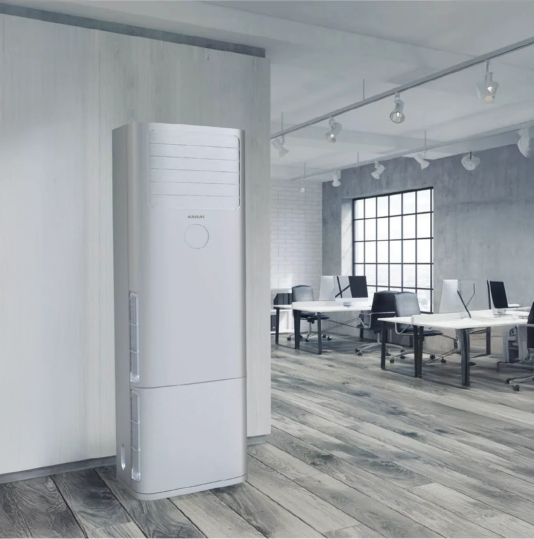 Podlahová klimatizace KAISAI KFS je navržena pro efektivní chlazení a vytápění prostor s vysokými nároky na výkon a komfort. Její kompaktní design umožňuje instalaci přímo na podlahu, což z ní činí ideální řešení pro místnosti, kde není možné nebo praktické instalovat nástěnné či stropní jednotky.