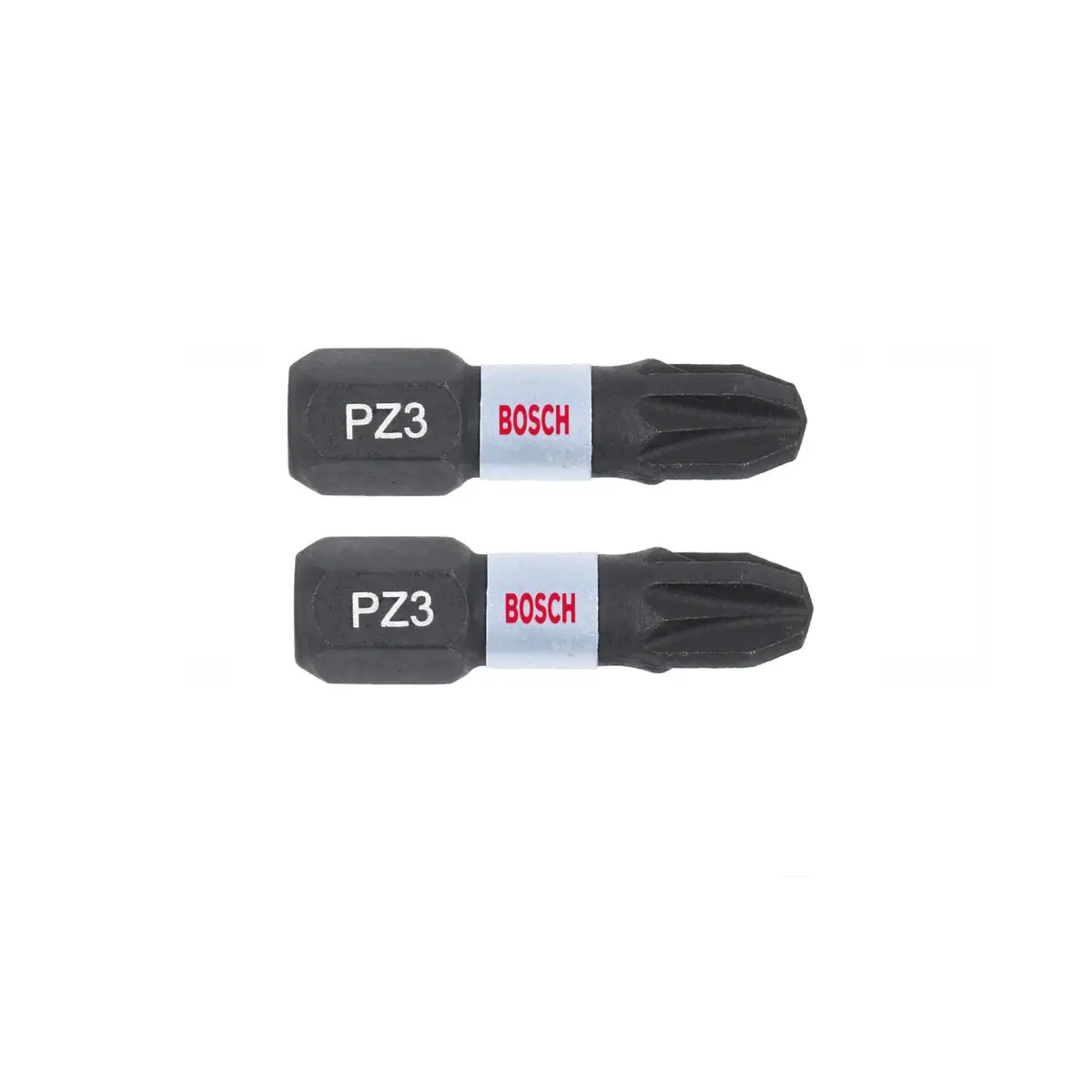 Odolný šroubovací hrot BOSCH Impact PZ3 pro rázové utahováky a aku vrtačky. Precizní profil, dlouhá životnost, balení 2 ks.