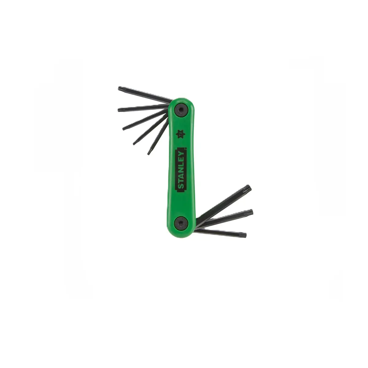 Kompaktní sada zástrčných klíčů Stanley Torx obsahuje 8 nejpoužívanějších velikostí pro práci s Torx šrouby. Klíče jsou vyrobeny z vysoce kvalitní oceli, která zajišťuje pevnost, odolnost a dlouhou životnost i při pravidelném používání. Díky přesnému opracování hrotů je zaručena perfektní kompatibilita s Torx hlavami a minimalizace opotřebení šroubů. Praktické pouzdro nebo sklopný držák udržuje klíče pohromadě, takže jsou vždy po ruce a snadno přenosné. Sada je ideální pro domácí kutily, mechaniky i profesionály v servisu a průmyslu.