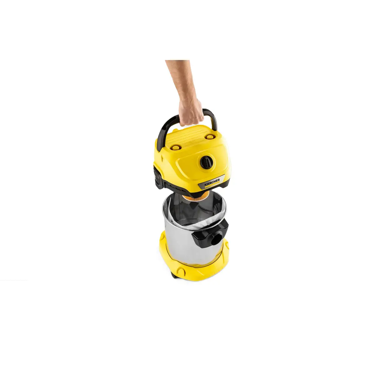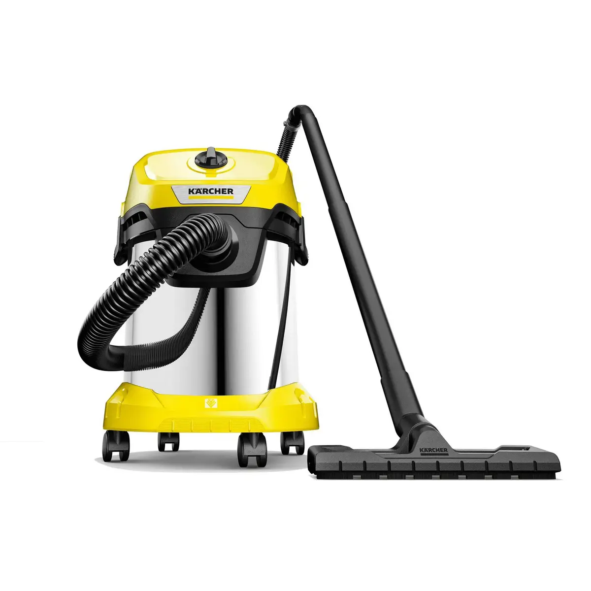 Výkonný víceúčelový vysavač Kärcher WD 3 S s nerezovou nádobou 17 l pro suché i mokré vysávání.